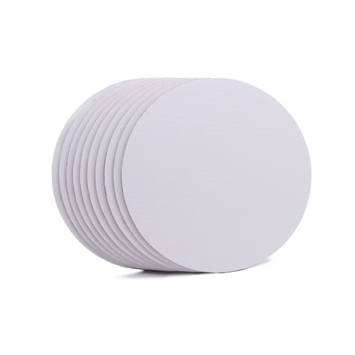 Sturdy corrugated cake boards provide strength and convenience for your baking projects. Package of 10 cake boards.