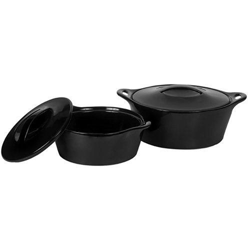- 4-Piece Set, includes 1-each 1-1/2-quart, 2-1/2-quart Round Casserole, Covered, Onyx