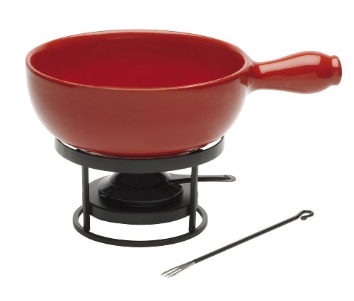 - Fondue set includes 2.6qt pot, burner stand and a set of 6 fondue forks