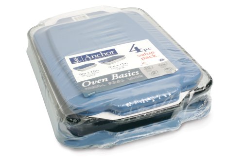 Buy Anchor Hocking Oven Basics 4-Piece ValuePack includes 2-Quart and 3-Quart Baking Dishes with Blue Plastic Lids, Crystal Clear Now