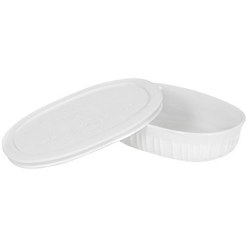Corningware French White 15-ounce oval dish includes 1-each 15-ounce French White oval dish with white plastic cover. The recipe for a great dish starts, surprisingly, with a great dish! Corningware French White bakeware proves that when it comes to food preparation, few things are more convenient than baking and serving in one dish. With its classic, fluted design, French White oven-to-table bakeware imparts a traditional elegance that is a perfect complement to any décor. Versatile yet stylish, Corningware French White is simple, from start to finish!