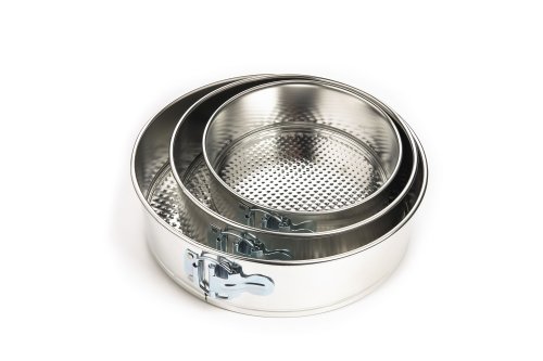 Set of three springform pans ranging in size from 7 Inch to 10 Inch.