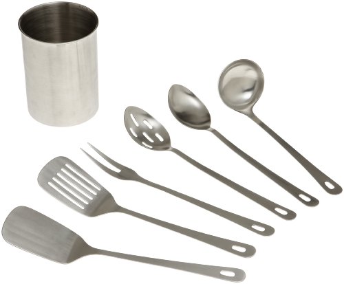 Set Includes Solid Spoon, Slotted Spoon , Fork,Solid Spatula, Slotted Spatula , Ladle and Tool Holder