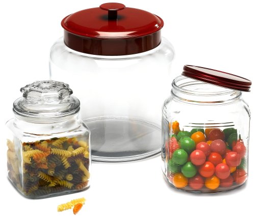 This versatile storage jar set complete with lids will store anything from candy to cookies to craft supplies! This set includes 3 different jar styles from Anchor Hocking. These jars can have multiple uses throughout the home!