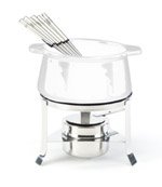 - Includes stainless-steel stand, burner, six forks