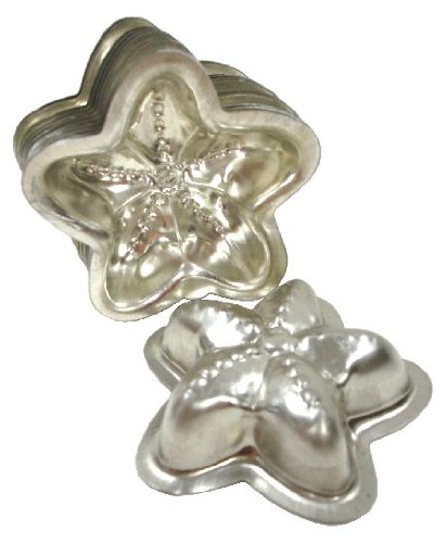 Use this set of 6 pans to make starfish shaped small cakes and muffins. Made of sturdy tinplate steel. 3.5 inches diameter. Made in Portugal.