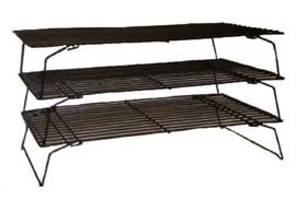 Set of 3 non-stick stackable cooling grids save counter space after baking. They are collapsible for easy storage and dishwasher safe.