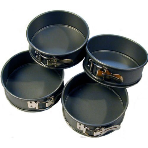 - Commercial-weight steel bakeware for even heat distribution- Set of 4 Mini Springform Pans, 4.5" each