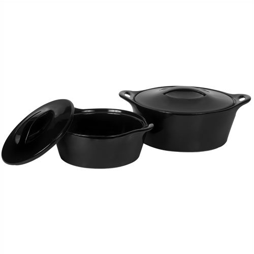 - This attractive and long-lasting set of 2 round casseroles with lids features one 1.5-qt. and one 2.5-qt. casserole- In sleek onyx black with ceramic covers and large open handles for easy and safe handling