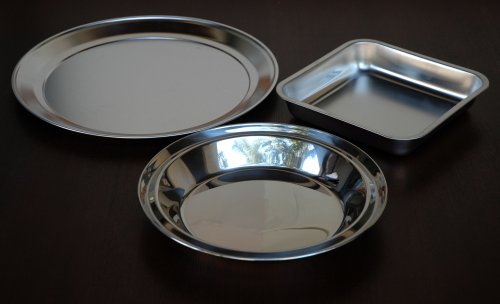 - 3 (Three) Piece set comes with 14" Pizza Pan, 10" Pie Plate and 8" Cake Pan- All items are constructed from 18/10 Stainless Steel