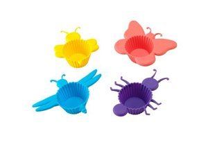 Create N Celebrate set of four silicone fun bug shaped cups. Set includes: ant, butterfly, ladybug and dragonfly shaped silicone cupcake cups